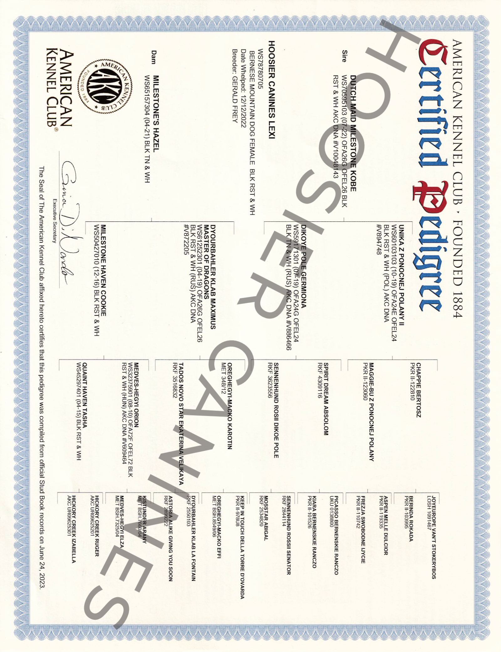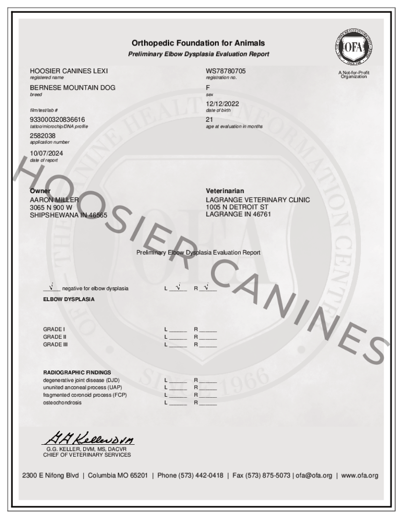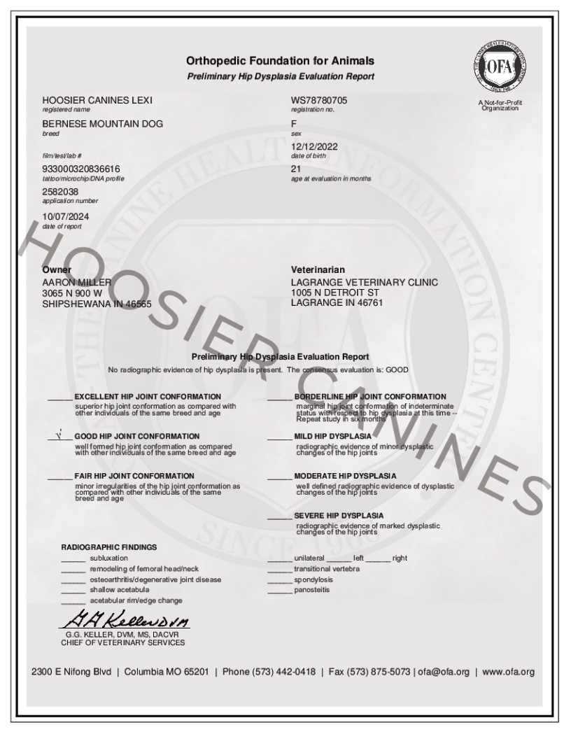 Lexi, our beautiful Bernese Mountain Dog and loving mother to our Bernedoodles. Lexi comes from a great line of Bernese and is known for her stunning colors. She is full of love for everyone she meets, making her a cherished member of our family.