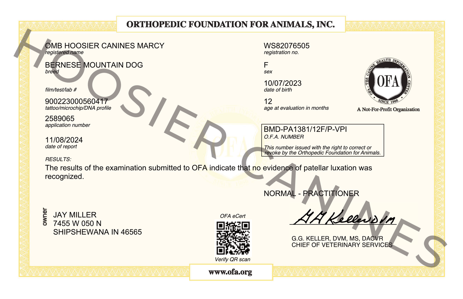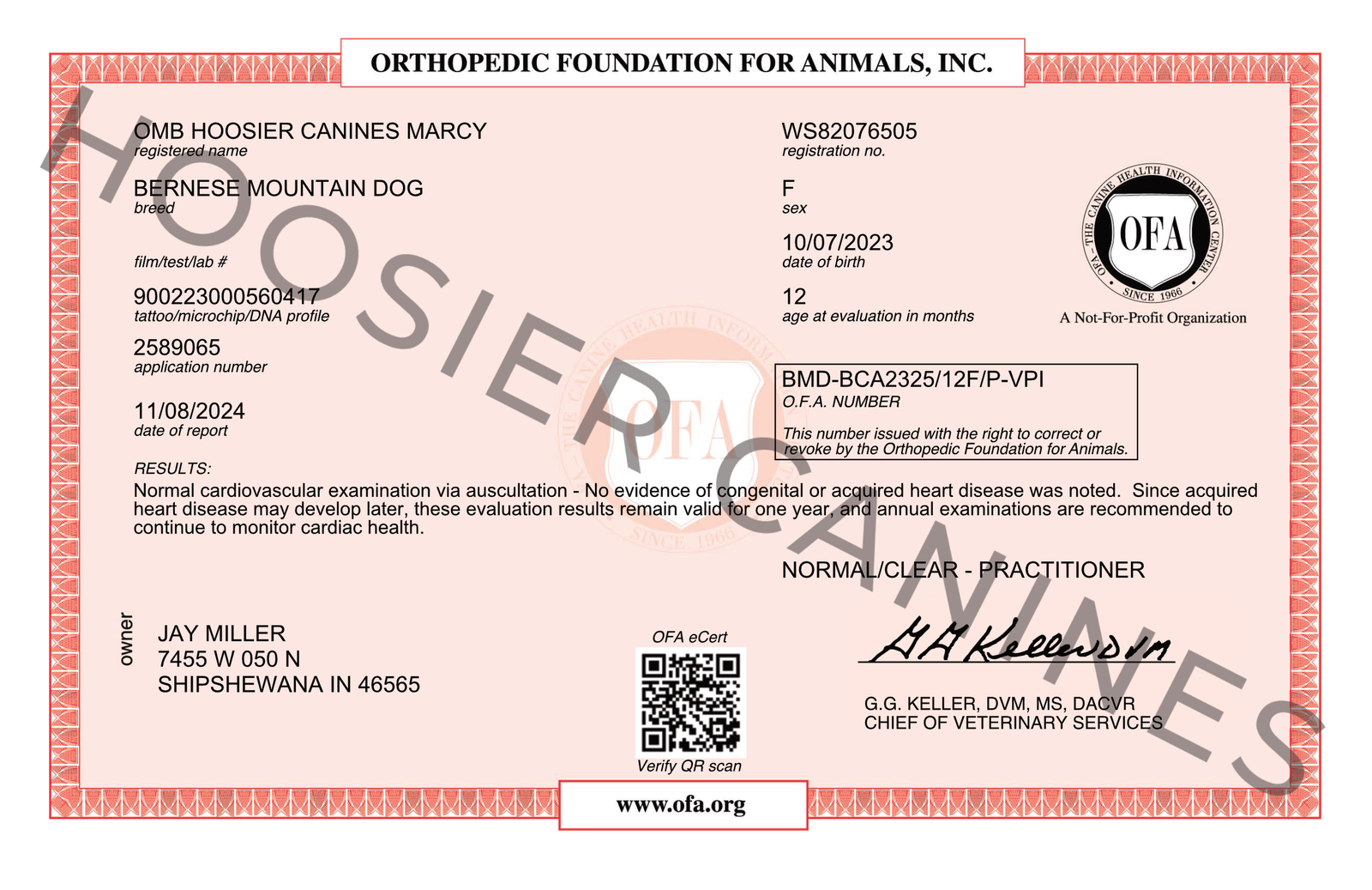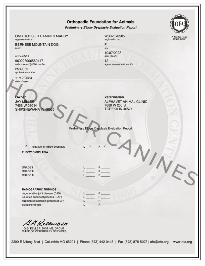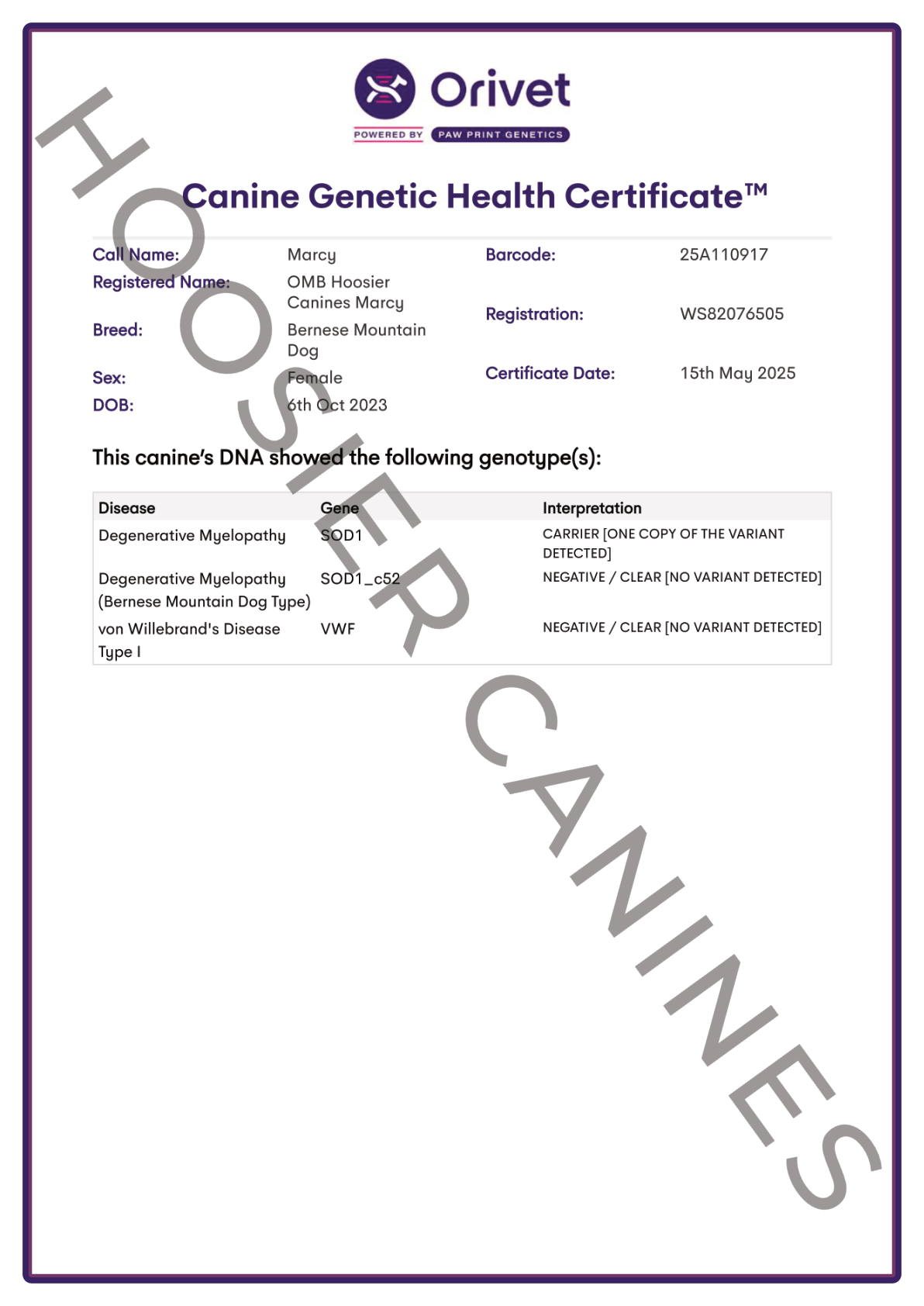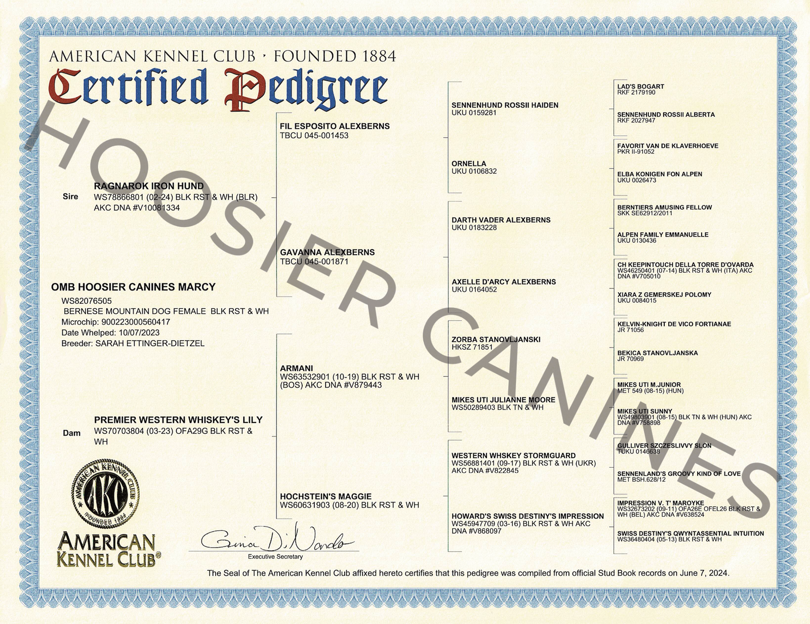 Marcy is a calm, loving Bernese Mountain Dog with a gentle and friendly temperament, everything we love to see in the breed. She comes from imported Russian championship bloodlines, bringing both beauty and strong genetics to our program.